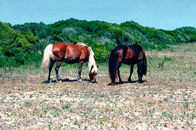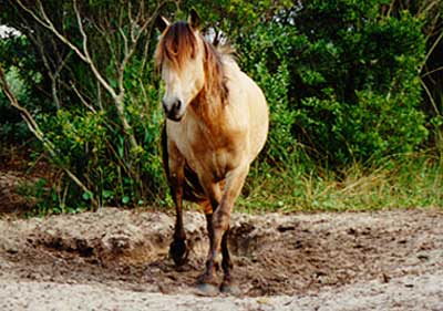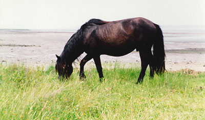 black stallion, Dionysus, near the Back Sound shore.